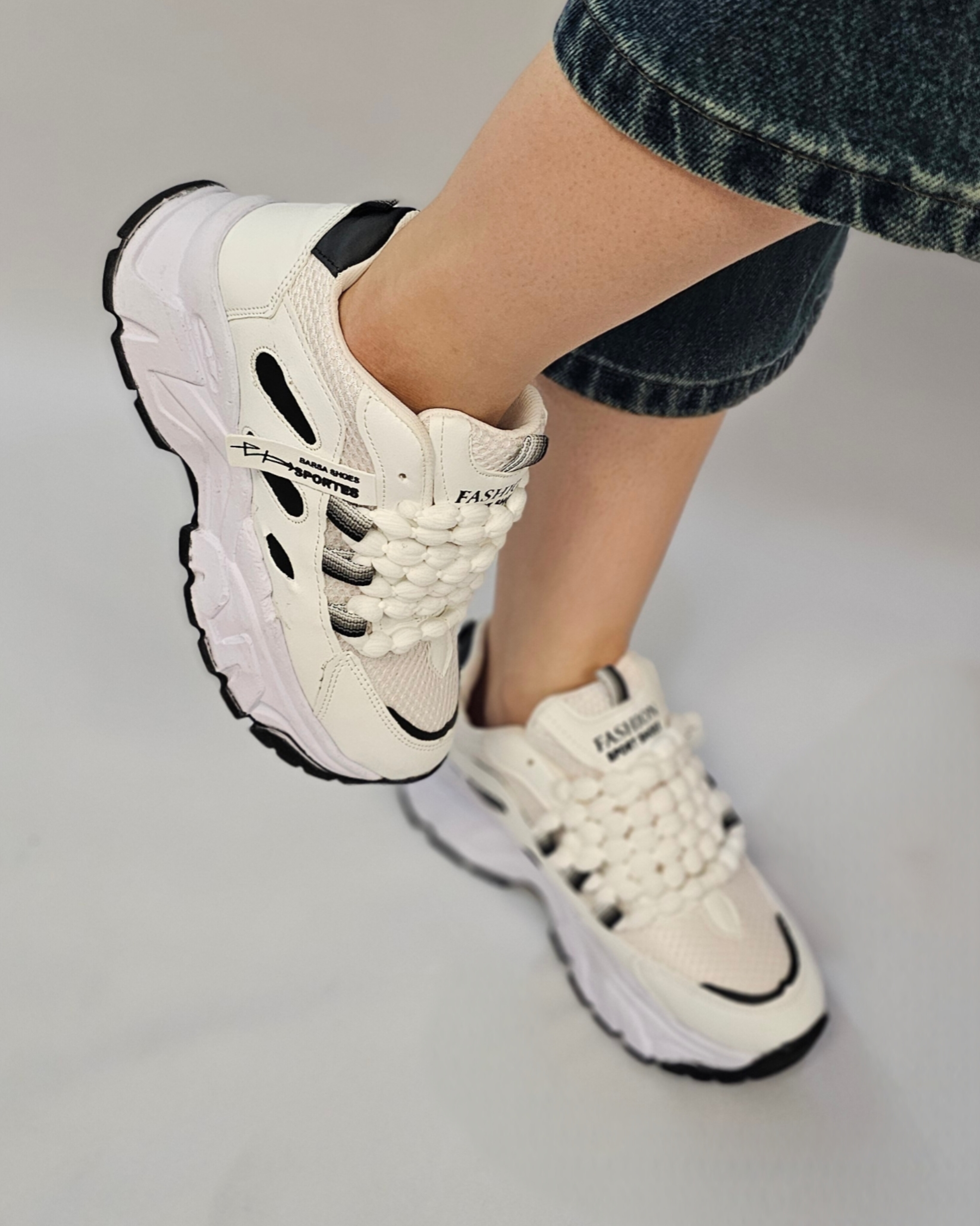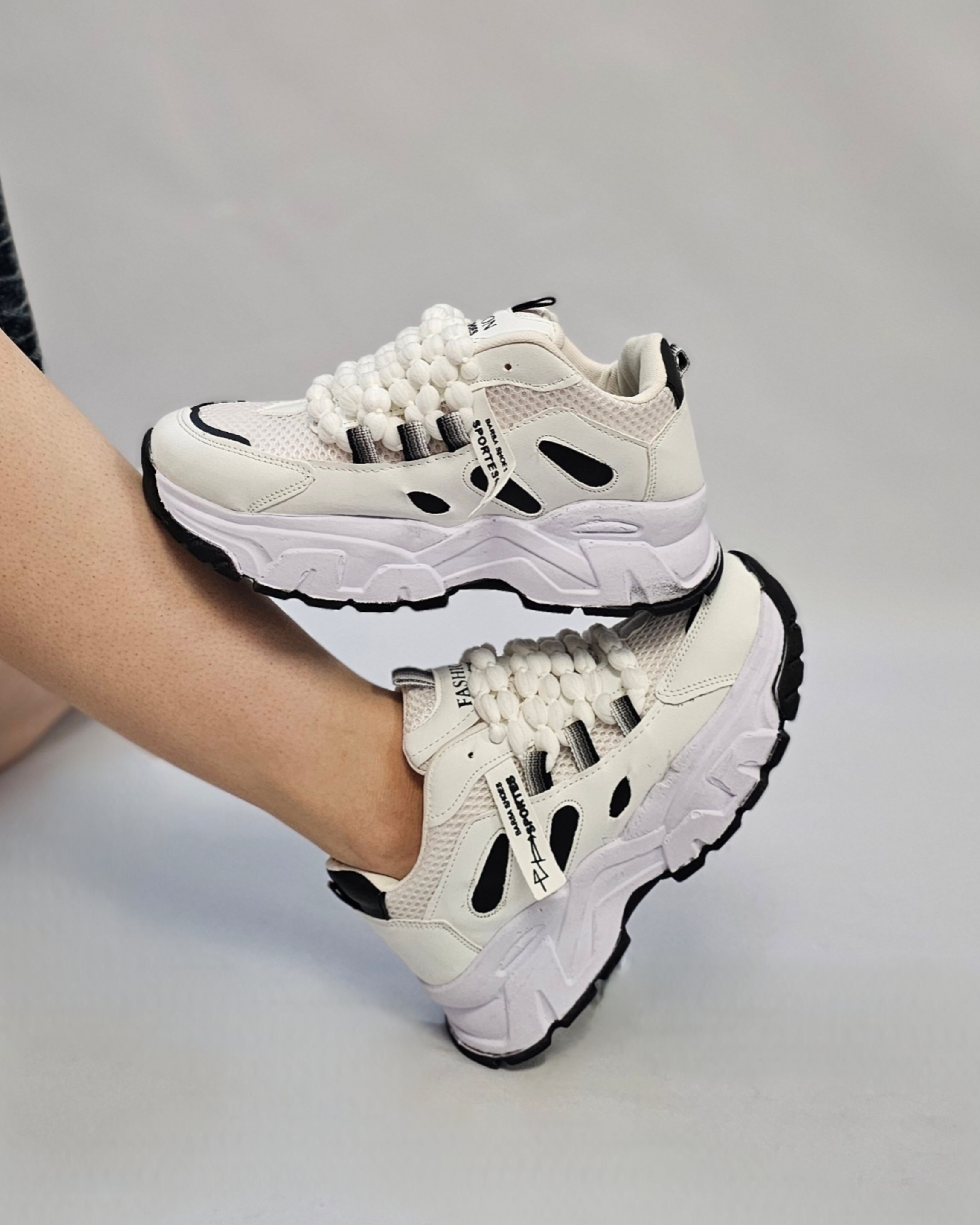 کتونی فشیون بند مرواریدی سفید مشکی