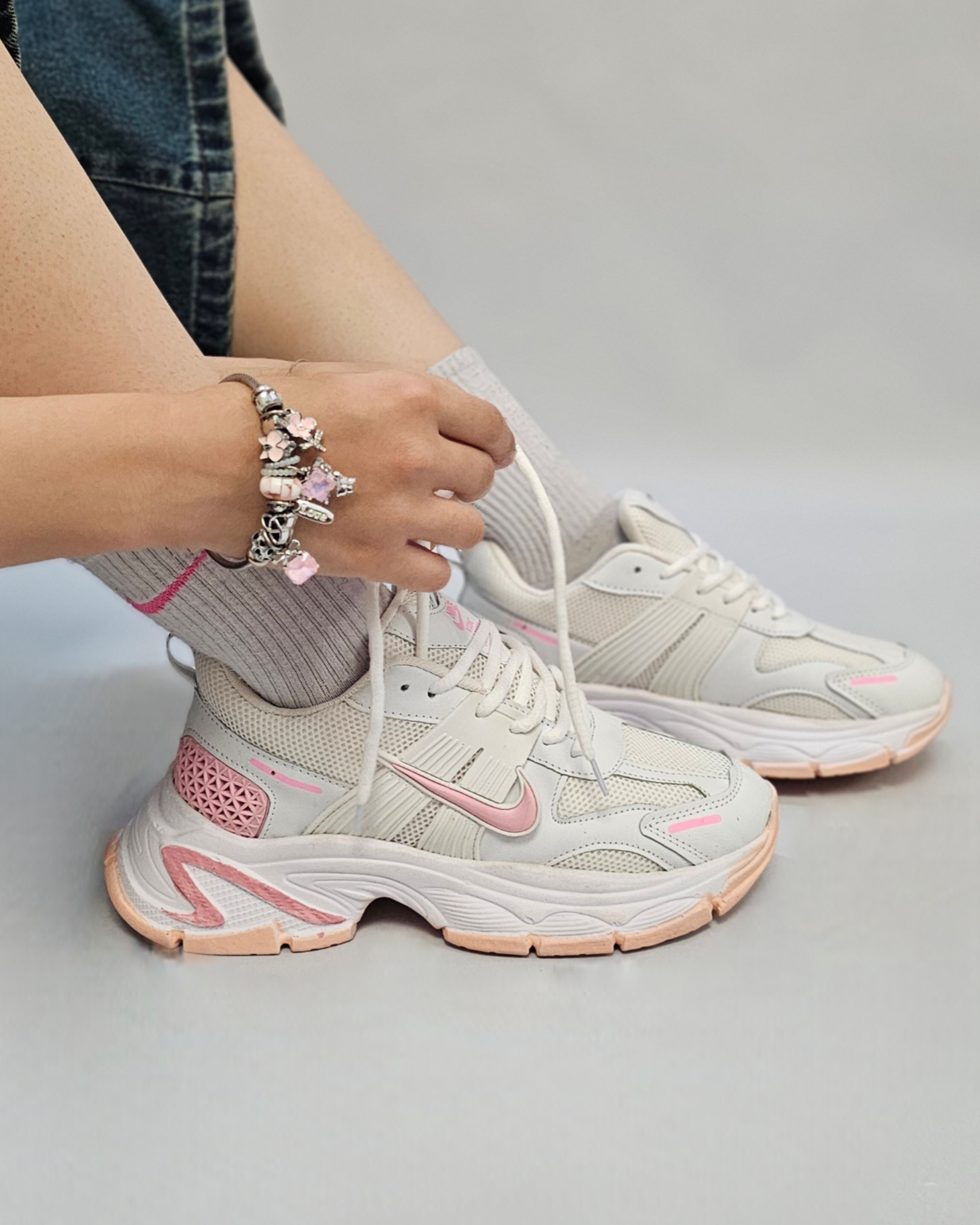 کتونی نایک v2k سفید صورتی